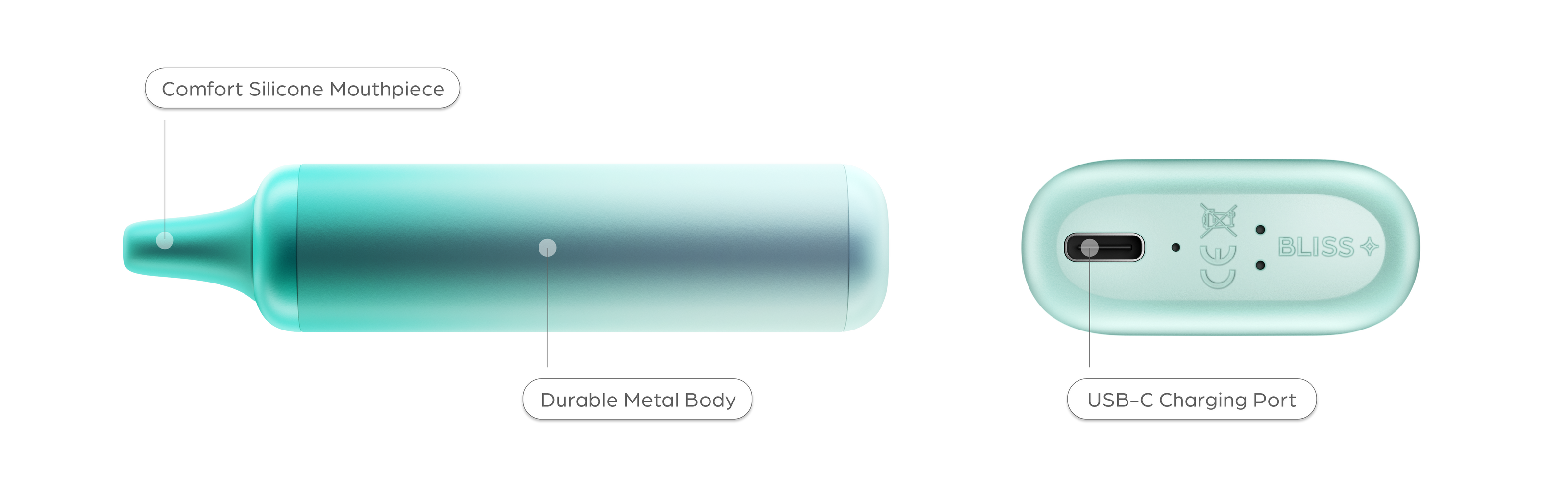 “LOVE Bliss Bars since I got to try one at an event. Flavor, hit, quality is the best. I love the rubber tip too. It’s comforting and doesn’t hit your teeth like these other plastic vapes."